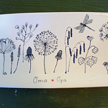 Abdrucke von Blumen auf Ton oder Keramik, die wir unter Anleitung der Künstlerin Karolina Gacke mit Bleistift und verschiedenen Farben auf Papier bringen.